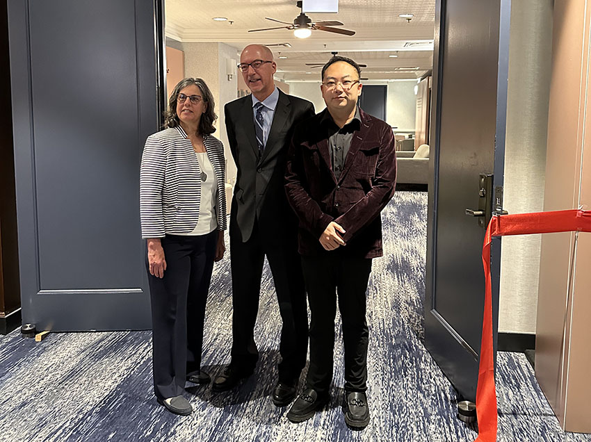 當(dāng)?shù)貢r(shí)間9號(hào)早上,美寶集團(tuán)董事局主席、國(guó)際再生醫(yī)學(xué)與創(chuàng)面修復(fù)學(xué)會(huì)主席徐鵬應(yīng)現(xiàn)任美國(guó)燒傷協(xié)會(huì)主席Robert Cartotto邀請(qǐng),出席了美國(guó)燒傷協(xié)會(huì)同理心博物館(ABA Empathy Museum)的開(kāi)館剪彩儀式,剪彩儀式上,Robert Cartotto特別感謝美寶對(duì)于該活動(dòng)的大力支持,聲明該活動(dòng)成功舉辦離不開(kāi)美寶等機(jī)構(gòu)的幫助。徐鵬主席在剪彩儀式后親身體驗(yàn)“鞋子里的一英里”(A mile in my shoes)活動(dòng),切身感受燒傷患者接受植皮治療后的艱難歷程。