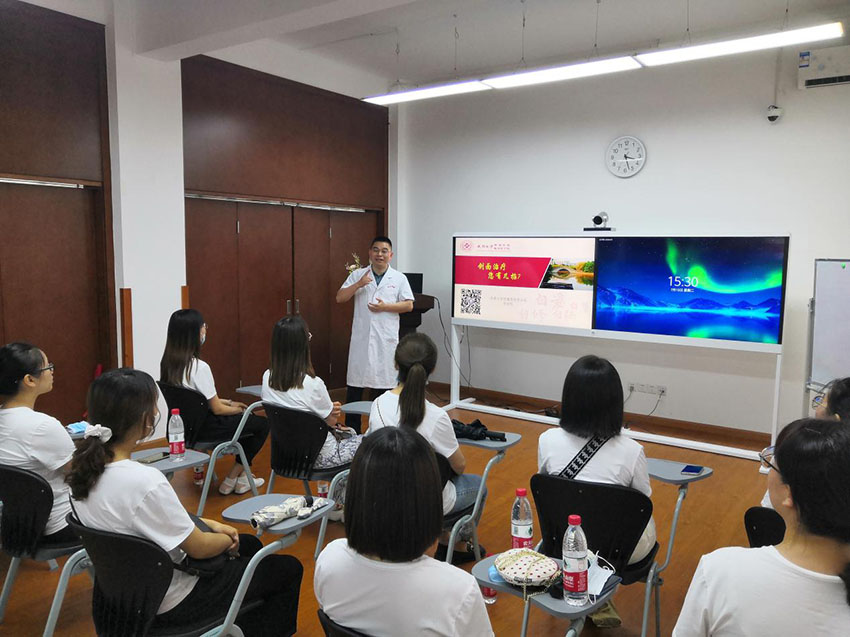 下午一行人來到湘雅三醫(yī)院,燒傷整形科主任,博士生導師周建大教授及燒傷整形科賀全勇教授、燒傷創(chuàng)瘍再生醫(yī)療專家金黨軍教授進行了再生醫(yī)療技術理論講座,美寶國際班師生團一行參觀了科室,對再生醫(yī)療技術的應用和發(fā)展有了更加深刻的認知。