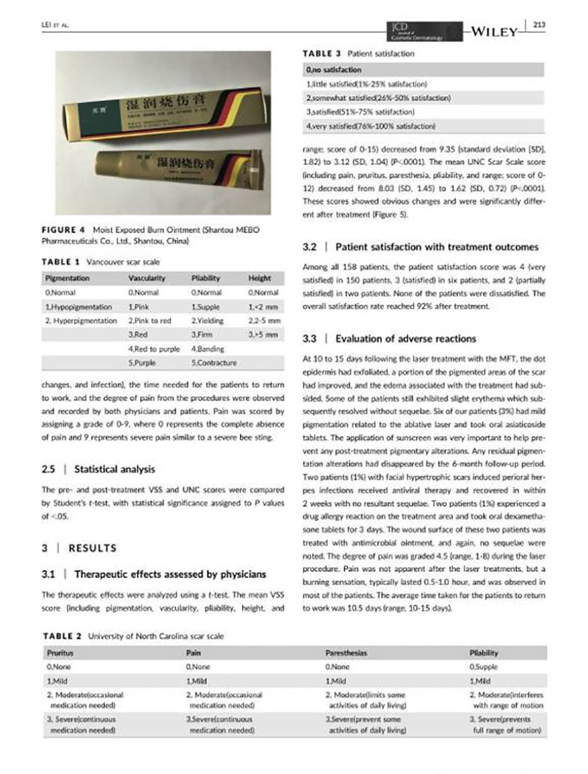 “濕潤燒傷膏對超脈沖CO2點陣激光干預(yù)兔耳淺表性瘢痕真皮—表皮連接區(qū)組織學(xué)的影響”一文發(fā)表于中國出版的《中華醫(yī)學(xué)美學(xué)美容雜志》及美國出版的《美容皮膚雜志》。