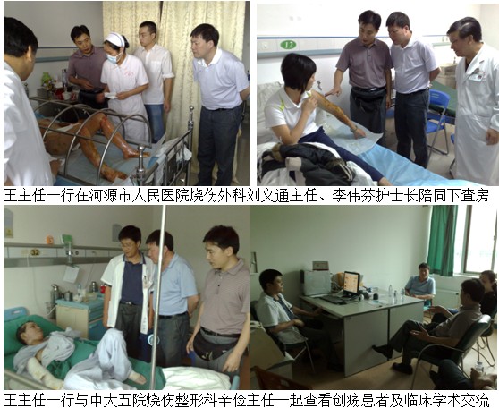 11月10日至11月13日,中國中西醫(yī)結(jié)合學(xué)會燒傷專業(yè)委員會常委、北京美寶燒傷創(chuàng)瘍研究所副所長、臨床部王洪生主任,在廣東辦事處主任李德喜主任、林燕欽陪同下先后到河源市人民醫(yī)院、中山大學(xué)附屬第五醫(yī)院進(jìn)行調(diào)研工作。王洪生主任等一行每到一家醫(yī)院都到病房查看患者,對疑難病例進(jìn)行臨床指導(dǎo)、會診,指導(dǎo)醫(yī)院規(guī)范應(yīng)用皮膚再生醫(yī)療技術(shù)治療糖尿病足、骨科創(chuàng)瘍患者。