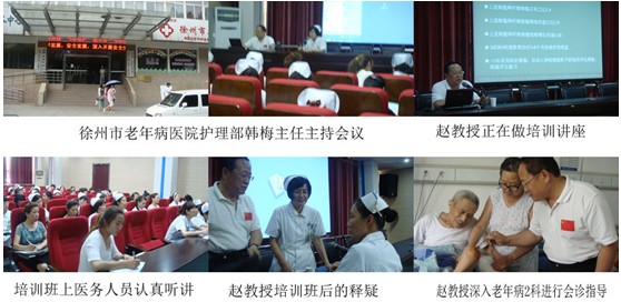 【2】7月19日下午趙教授在徐州市老年病醫(yī)院進(jìn)行全院護(hù)理人員開展使用再生復(fù)原技術(shù)治療老年病合并皮膚潰瘍的培訓(xùn)。培訓(xùn)期間與護(hù)理人員進(jìn)行互動答疑環(huán)節(jié)。會后趙教授深入老年病2科進(jìn)行會診指導(dǎo)。