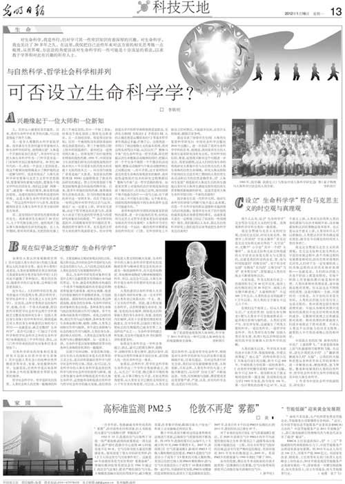 光明日報(bào):可否設(shè)立生命科學(xué)學(xué)?