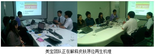 6月18日上午9點(diǎn),美寶團(tuán)隊(duì)一行來(lái)到當(dāng)?shù)睾献骰锇镈KSH總部,為4名高層人員介紹再生醫(yī)療技術(shù)皮膚原位再生機(jī)理。仔細(xì)的講解和PPT的內(nèi)容讓四名新上任的高層對(duì)美寶科學(xué)機(jī)理有了大致了解,他們紛紛點(diǎn)頭表示會(huì)繼續(xù)潛心研讀相關(guān)再生科學(xué)論文和著作,為再生技術(shù)在泰國(guó)的普及做好基礎(chǔ)。