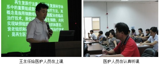 2011年06月14日,中國中西醫(yī)結(jié)合學(xué)會燒傷專業(yè)委員會常委、中國燒傷創(chuàng)瘍雜志社副總編輯、北京燒傷創(chuàng)瘍研究所副所長、臨床部主任王洪生研究員應(yīng)邀到該醫(yī)院以“再生復(fù)原療法療法在燒傷及難愈性創(chuàng)面臨床規(guī)范化應(yīng)用及新進展”為題進行了專題講座。該院外科、骨科,以及內(nèi)科等護理人員參加了講座,在學(xué)術(shù)講座中,王主任對燒傷及各種難愈性創(chuàng)傷,潰瘍創(chuàng)面的規(guī)范處理方法與技巧并結(jié)合臨床圖片做了詳細地講解。