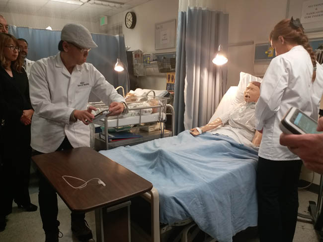 儀式結(jié)束后,大家一同參觀了洛杉磯州大徐榮祥健康與公共事業(yè)服務(wù)大學(xué)護(hù)理模擬實驗室等。