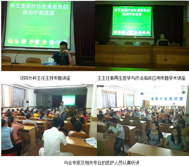 2012年10月23日,應(yīng)該院的邀請中國中西醫(yī)結(jié)合學(xué)會(huì)燒傷專業(yè)委員會(huì)常委兼秘書,《中國燒傷創(chuàng)瘍雜志》副總編輯,北京燒傷創(chuàng)瘍研究所副所長、臨床研究部主任王洪生研究員到該醫(yī)院進(jìn)行“再生復(fù)原療法在燒傷及難治性創(chuàng)傷、潰瘍創(chuàng)面治療臨床規(guī)范化應(yīng)用及新進(jìn)展”專題講座。專題學(xué)術(shù)講座于晚上7點(diǎn)半在該醫(yī)院會(huì)議室舉行,該院燒傷科,骨科,普外科,腫瘤科、內(nèi)科,皮膚科和婦產(chǎn)科的相關(guān)專業(yè)60余名專家及醫(yī)護(hù)人員參加了學(xué)術(shù)會(huì)議。在專題學(xué)術(shù)講座中,王主任結(jié)合了大量的臨床病例圖片,針對不同深度的燒傷創(chuàng)面及各類難愈性創(chuàng)傷、潰瘍創(chuàng)面的規(guī)范化處理方法與技巧、注意事項(xiàng)等進(jìn)行了細(xì)致地講解。在會(huì)的醫(yī)護(hù)人員看到大量真實(shí)的臨床病例資料圖片后,都被再生醫(yī)療技術(shù)良好的治療效果所震撼與折服。此次講座深受會(huì)者的歡迎,再生復(fù)原技術(shù)為醫(yī)護(hù)人員在臨床上提供了一條新的治療思路,開闊了醫(yī)護(hù)工作者的視野,增長了新的知識。