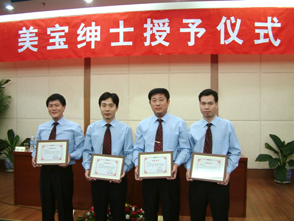 2004年9月2日至4,美寶國際集團(tuán)在京召開營銷工作會(huì)議暨美寶紳士授予儀式,會(huì)議的議題是總結(jié)2004年前期市場營銷工作中所取得的成績和存在的主要問題以及解決辦法,并對在市場營銷工作中做出重大貢獻(xiàn)的銷售人員授予“美寶紳士”稱號(hào)。