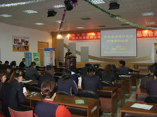[2005年4月15日,山東濰坊]  2005年4月15日至17日,山東濰坊國(guó)青醫(yī)藥有限公司邀請(qǐng)了商業(yè)和醫(yī)院客戶舉行了“美寶系列產(chǎn)品推介會(huì)”,在三天的活動(dòng)中,安排了豐富的活動(dòng),國(guó)青醫(yī)藥下屬連鎖藥店店員參加了美寶產(chǎn)品知識(shí)培訓(xùn),并舉行了產(chǎn)品促銷。
