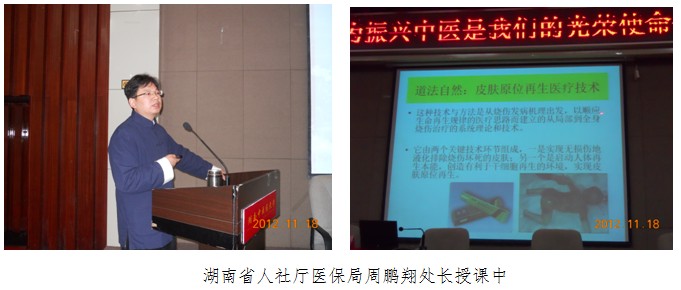 2012年11月18日,湖南省人社廳醫(yī)保局周鵬翔處長,應(yīng)湖南省中醫(yī)藥大學(xué)共青團(tuán)的邀請,帶領(lǐng)美寶國際集團(tuán)湖南辦汪波主任、侯效東副主任到該大學(xué)做了一次題為“順勢而為振興中醫(yī)是我們的光榮使命”的主題演講。一大早,湖南中醫(yī)藥大學(xué)國際交流中心報(bào)告廳座無虛席。演講一開始,周處長就開門見山地展示了他在湘雅三醫(yī)院應(yīng)用“人體再生復(fù)原科學(xué)”的成果,同時(shí)詳細(xì)介紹了“人體再生復(fù)原科學(xué)”的發(fā)展歷程和主要理論,號召學(xué)生逐步培養(yǎng)道法自然的中醫(yī)臨床思維和科研思維。接著周處長深入淺出地介紹了“中醫(yī)”與“周易”的核心理論,并用“周易”大智慧多角度、廣視野的分析了當(dāng)前醫(yī)療存在的主要問題。最后,周處長結(jié)合十八大精神分析了醫(yī)學(xué)發(fā)展方向,號召學(xué)生既要樹立遠(yuǎn)大理想,又要腳踏實(shí)地學(xué)好中醫(yī)經(jīng)典,為振興中醫(yī)添磚加瓦!