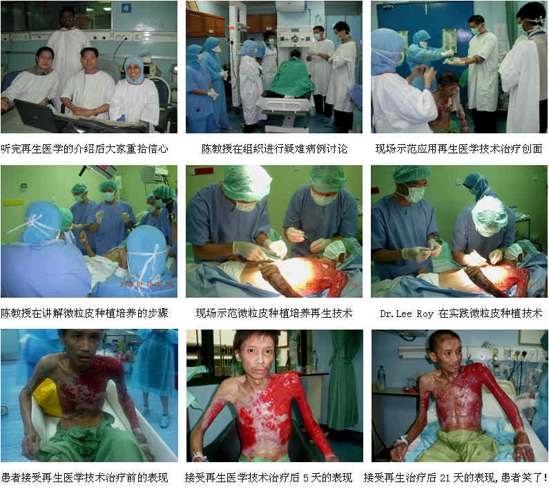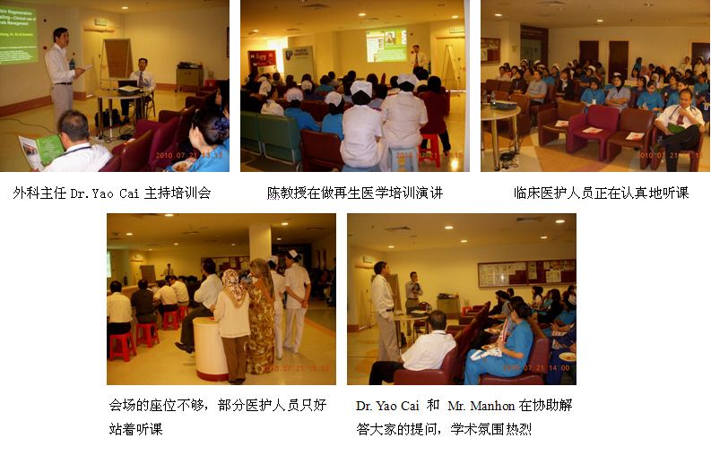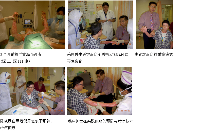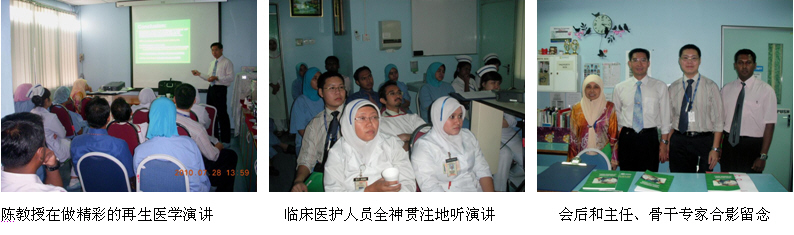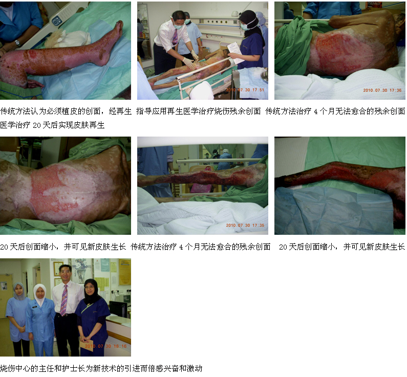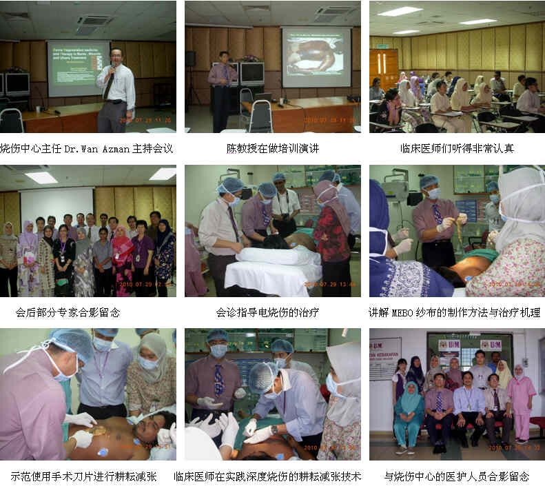 8、7月30日上午,陳教授應(yīng)邀到Hospital Selayang Dato Pathanan( 省政府醫(yī)院,也是當(dāng)?shù)刈畲蟮尼t(yī)院,450病床,燒傷中心有8張病床)介紹燒傷再生醫(yī)學(xué)技術(shù)并會(huì)診指導(dǎo)臨床病例。學(xué)術(shù)交流和現(xiàn)場(chǎng)指導(dǎo)后,該院馬上引進(jìn)和應(yīng)用再生醫(yī)學(xué)技術(shù)治療燒傷創(chuàng)瘍患者。1個(gè)月后隨訪獲知:采用再生醫(yī)學(xué)技術(shù)治療的患者獲得了很好的臨床效果,實(shí)現(xiàn)了新醫(yī)院的成功開發(fā)。