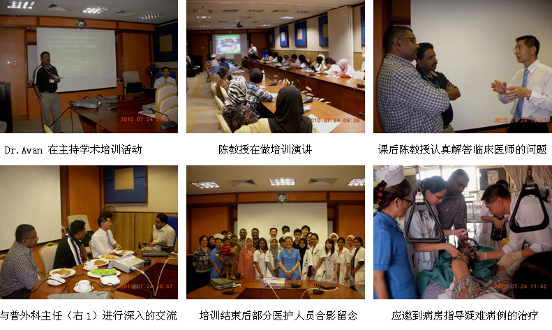 5、 7月24日上午9時(shí),陳教授應(yīng)邀到Hospital Tergku Ampuan Rahimah Klang (巴生省政府醫(yī)院) 給普外科和燒傷科的醫(yī)護(hù)人員介紹燒傷再生醫(yī)學(xué)和進(jìn)行臨床技術(shù)規(guī)范培訓(xùn)。學(xué)術(shù)活動(dòng)在該院的外科教研室舉辦,燒傷科主任Dr. Awan 主持學(xué)術(shù)活動(dòng),全科的35名醫(yī)護(hù)人員參加了培訓(xùn)會(huì)議。培訓(xùn)內(nèi)容新穎、實(shí)用,很受大家的歡迎。教學(xué)培訓(xùn)與臨床病例的實(shí)踐治療,直觀地證實(shí)了再生醫(yī)學(xué)的神奇效果。