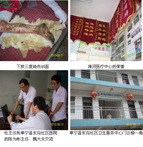 2010年8月9日~13日,中國中西醫(yī)結(jié)合學(xué)會燒傷專業(yè)委員會常委、中國燒傷創(chuàng)瘍雜志社常務(wù)編委、北京美寶燒傷創(chuàng)瘍研究所臨床部專家杜福勤教授和學(xué)會駐南京辦事處劉恒主任一同走訪了大豐市人民醫(yī)院、鹽城市鹽阜醫(yī)院、射陽縣海河燒傷醫(yī)療中心、濱??h人民醫(yī)院、阜寧縣人民醫(yī)院、阜寧婦幼醫(yī)院、阜寧仁慈醫(yī)院、阜寧縣東溝社區(qū)服務(wù)中心。