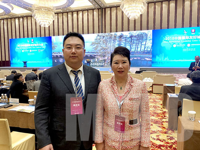 11月15日,2018中國國際友城大會在武漢開幕。來自60個國家及國內(nèi)部分省市﹑自治區(qū)﹑直轄市代表約800余人出席了本次大會。國家副主席、湖北省長、烏干達副總統(tǒng)塞坎迪、日本前首相鳩山由紀夫、中國人民對外友好協(xié)會會長李小林、美國國際姐妹城協(xié)會候任董事長H.E. Carol  Robertson Lopez 以及武漢市委書記出席開幕式并致辭。美寶集團董事局主席徐鵬與副主席李俐受邀出席了武漢市政府主辦的招待晚宴及友城盛會。