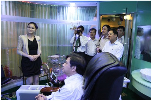 在多功能會議廳,美寶國際集團(tuán)代表,國際市場集團(tuán)總裁孫總等4人接待了越南衛(wèi)生部代表團(tuán)。首先,孫總表達(dá)了對越南衛(wèi)生部一行到訪美寶國際集團(tuán)的歡迎,并簡短地介紹了集團(tuán)的情況、目前海外市場的狀況以及美寶的科學(xué)成就,使越南代表團(tuán)對美寶國際集團(tuán)有了綜合的了解。