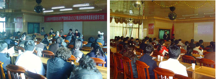 2008年11月27日~30日,由云南省第一屆中西醫(yī)結(jié)合學(xué)會燒傷專委會主辦、云南省騰沖縣人民醫(yī)院承辦的云南省第一屆中西醫(yī)結(jié)合學(xué)會第四次學(xué)術(shù)年會暨2008年云南省繼續(xù)醫(yī)學(xué)教育項目“中西醫(yī)結(jié)合救治嚴(yán)重?zé)齻鸐SFO和創(chuàng)面修復(fù)新進(jìn)展學(xué)習(xí)班”在騰沖縣人民醫(yī)院行政樓4樓會議室舉行,來自昆明醫(yī)學(xué)院第二附屬醫(yī)院和云南省各地、州、市、縣130余名云南省第一屆中西醫(yī)結(jié)合學(xué)會燒傷專委會委員和相關(guān)專業(yè)的專家、學(xué)者及醫(yī)護(hù)人員參加了學(xué)習(xí)班。