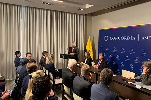 5月13-14日,CONCORDIA美洲峰會在哥倫比亞首都波哥大舉行,美寶集團徐鵬總裁作為CONCORDIA全球精英會員應邀出席大會并與哥倫比亞總統(tǒng)馬爾克斯先生、尼日利亞前總統(tǒng)奧巴桑喬先生、哥倫比亞內閣部長及議會領袖們共同見證了哥倫比亞與美國就能源方面簽署合作協(xié)議。