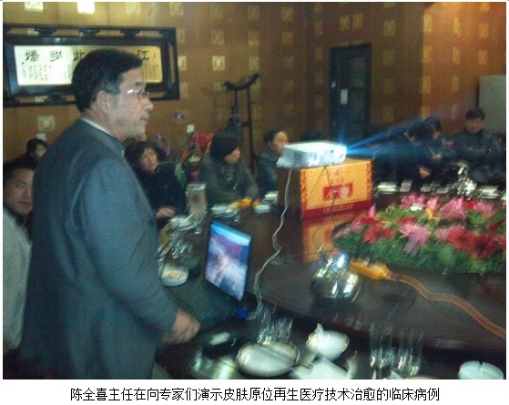 2012年11月4日,中國(guó)中西醫(yī)結(jié)合學(xué)會(huì)燒傷專業(yè)委員會(huì)、北京美寶燒傷創(chuàng)瘍研究所臨床部專家陳全喜和河南技術(shù)推廣責(zé)任人賀杰鋒應(yīng)邀來(lái)到了商丘市寧陵縣。下午5點(diǎn)對(duì)寧陵縣人民醫(yī)院外科,中醫(yī)院外科、婦產(chǎn)科,婦幼保健院婦產(chǎn)科二十一位科主任護(hù)士長(zhǎng)進(jìn)行皮膚原位再生醫(yī)療技術(shù)的培訓(xùn)。