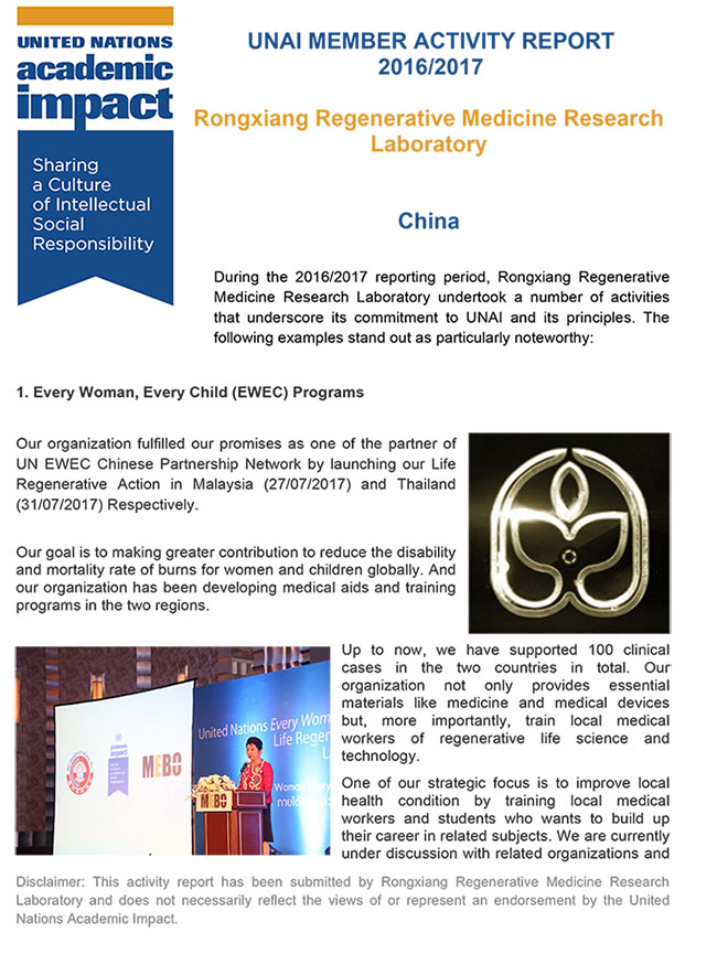 “ 聯(lián)合國(guó)學(xué)術(shù)影響”成員報(bào)告北京榮祥再生醫(yī)學(xué)研究所相關(guān)展示內(nèi)容如下: