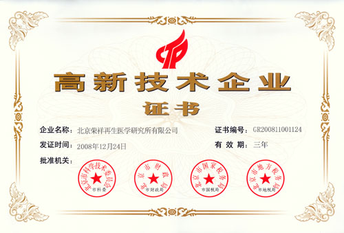 日前,經(jīng)過北京市有關部門的嚴格審核,在2008年的北京市高新技術企業(yè)的重新認定中,美寶國際集團北京榮祥再生醫(yī)學研究所再次被確認為高新技術企業(yè)!
