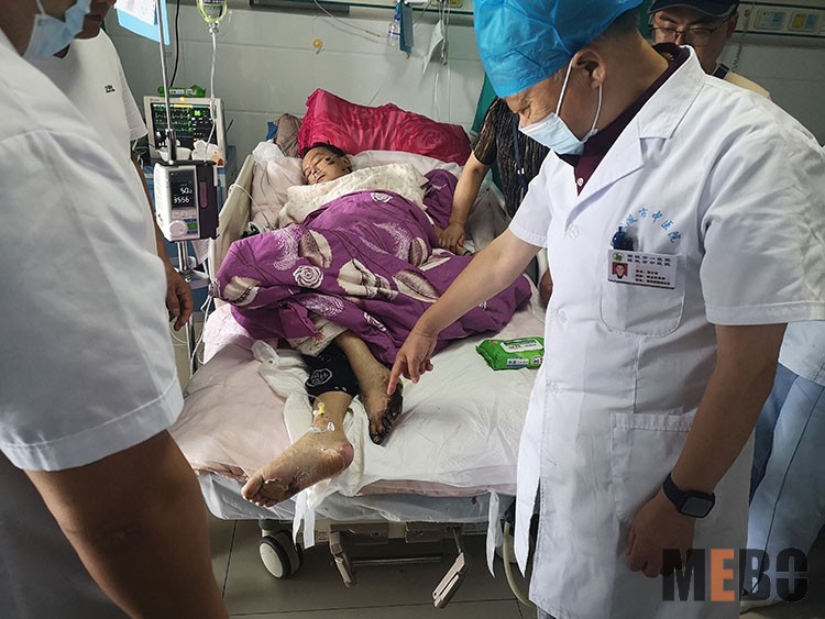 2022年8月3日,中國中西醫(yī)結(jié)合學(xué)會(huì)燒傷專業(yè)委員會(huì)醫(yī)療部張強(qiáng)主任,應(yīng)邀到訪湖北宜昌長陽土家族自治縣人民醫(yī)院普外科,會(huì)診兩例燒傷患者。其中一例患者77歲,外傷后臀部及雙下肢二度燒傷,入院第四天。張主任示范清創(chuàng)技巧,對后期創(chuàng)面如何處理提供了中肯方案。劉勇主任,張磊醫(yī)師和鄧邦力醫(yī)師等感謝張主任不辭勞苦教學(xué)查房,大家受益匪淺,表示在今后臨床中將美寶再生醫(yī)療技術(shù)學(xué)以致用,造?;鶎永习傩?!