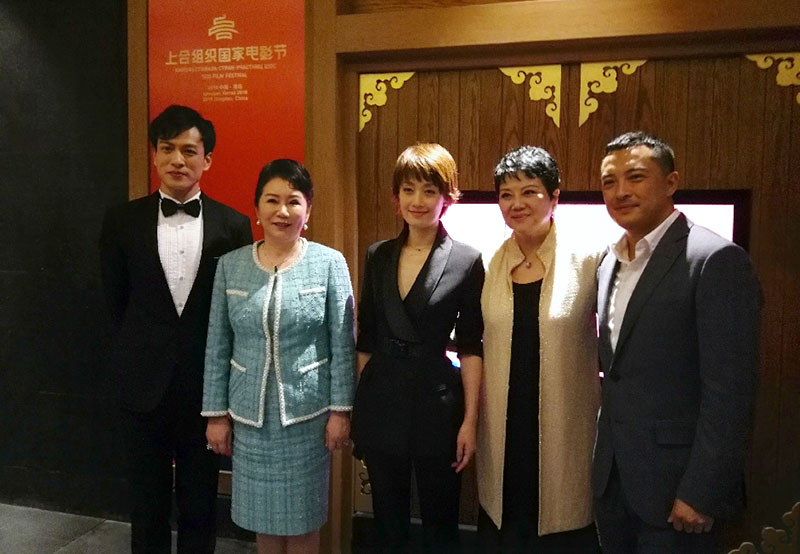 當(dāng)晚,李俐(左二)作為胡玫電影《進(jìn)京城》制片之一和導(dǎo)演胡玫(右二)演員富大龍(右一)演員馬伊琍(中)演員馬敬涵(左一)共同出席了上合組織國家電影節(jié)開幕式,拉開了此次將有近60部上合組織國家的優(yōu)秀影片的展映和評獎,一場國際影視盛會就此開啟。CCTV6電影頻道對此次活動進(jìn)行了全程直播。