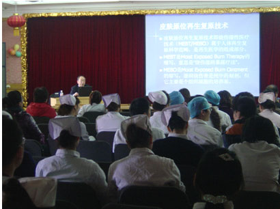 講座結(jié)束后,與會(huì)人員紛紛就應(yīng)用皮膚再生復(fù)原醫(yī)療技術(shù)治療燒傷創(chuàng)瘍類(lèi)患者的臨床經(jīng)驗(yàn),交流了臨床應(yīng)用該項(xiàng)技術(shù)的所取得的滿(mǎn)意療效,使大家對(duì)人體再生復(fù)原科學(xué)有了更深入地了解。隨后參會(huì)的醫(yī)護(hù)人員對(duì)于皮膚原位再生醫(yī)療技術(shù)在燒傷、創(chuàng)傷臨床治療中的遇到的問(wèn)題進(jìn)行了咨詢(xún)和熱烈地討論,對(duì)于美寶疤痕軟膏、創(chuàng)瘍貼等產(chǎn)品在皮膚原位再生復(fù)原技術(shù)規(guī)范應(yīng)用進(jìn)行了咨詢(xún)。一時(shí)間講課的教室瞬時(shí)成了學(xué)術(shù)氣氛濃厚的學(xué)術(shù)討論會(huì)。