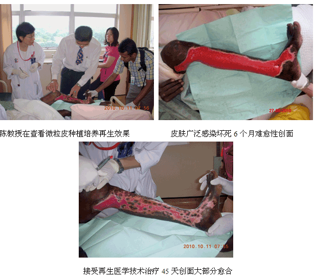 1、2010年10月11日上午7時30分,來自中國燒傷創(chuàng)瘍科技中心的陳永翀主任和負(fù)責(zé)馬來西亞學(xué)術(shù)推廣和醫(yī)療開發(fā)的Ms. Ling Shin Chew,應(yīng)馬來大學(xué)醫(yī)(UMMC)燒傷科負(fù)責(zé)人Dr. Margaret的邀請,來到了該院的外科病房會診和指導(dǎo)了3例疑難燒傷創(chuàng)瘍患者的治療,實現(xiàn)了很好的維護(hù)、提高再生醫(yī)學(xué)技術(shù)水平的效果。