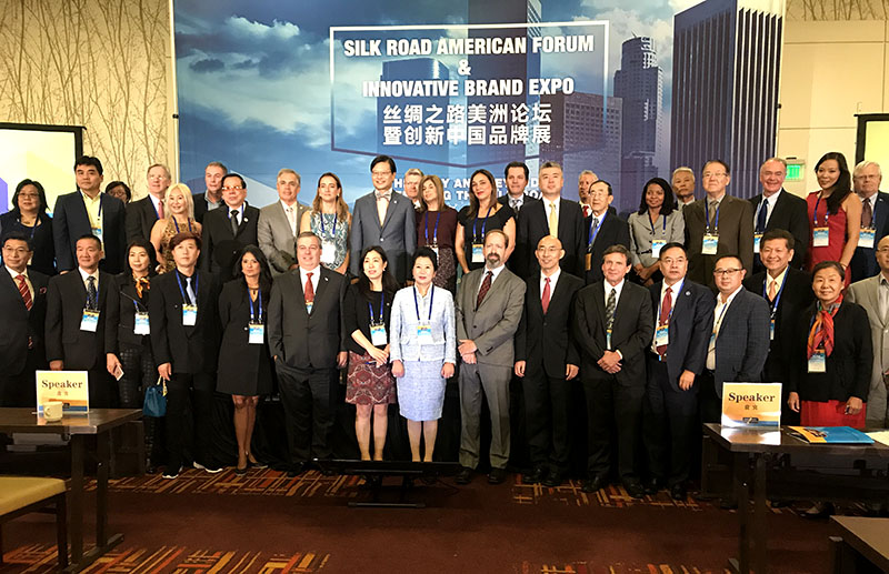 2017年11月2日,“絲綢之路 美洲論壇”在洛杉磯市中心萬(wàn)豪酒店舉辦。來(lái)自中國(guó)、巴拿馬、加拿大及美國(guó)當(dāng)?shù)氐恼?、商及智?kù)名人約200人出席了此次大會(huì)。此為首次主流經(jīng)貿(mào)論壇,主要議題探討沿太平洋商路的往昔與未來(lái),從實(shí)務(wù)的角度分析與研究環(huán)太平洋地區(qū)貿(mào)易發(fā)展的狀況與未來(lái)合作前景,形成高端人脈與企業(yè)高效交流互動(dòng),并達(dá)成了諸多合作意向與合作成果。