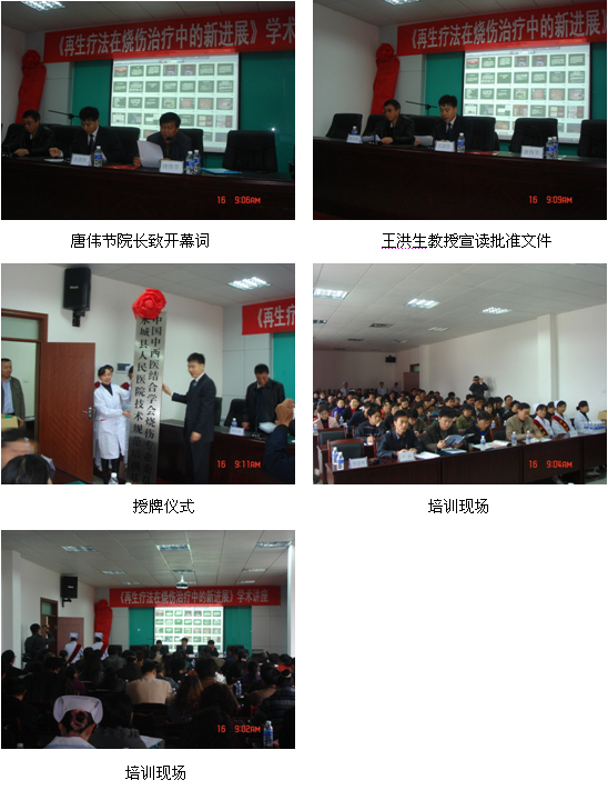 2010年4月16日,經(jīng)中國中西醫(yī)結(jié)合學(xué)會燒傷專業(yè)委員會審核批準的“中國中西醫(yī)結(jié)合學(xué)會燒傷專業(yè)委員會水城縣人民醫(yī)院技術(shù)規(guī)范培訓(xùn)基地”在貴州省水城縣人民醫(yī)院成立,縣政府縣衛(wèi)生局下文要求全縣醫(yī)療單位參加成立大會和“再生療法在燒傷治療中的新進展”培訓(xùn)講座。此次成立大會邀請了中國中西醫(yī)結(jié)合學(xué)會燒傷專業(yè)委員會常委王洪生教授和貴州省學(xué)術(shù)辦公室主任張志明。大會由該院燒傷科主任郭大勇主持,唐偉節(jié)院長致開幕詞,王洪生教授宣讀了“中國中西醫(yī)結(jié)合學(xué)會燒傷專業(yè)委員會批準成立水城縣人民醫(yī)院技術(shù)規(guī)范培訓(xùn)基地的批準文件”,并舉行了簡短的揭牌儀式。最后,王洪生教授向水城縣30多家醫(yī)療單位,鄉(xiāng)鎮(zhèn)衛(wèi)生院的醫(yī)護人員進行了“再生療法在燒傷治療中的新進展”的培訓(xùn)。大家的學(xué)習(xí)態(tài)度積極,學(xué)習(xí)熱情非常高漲,起到了很好的臨床應(yīng)用的培訓(xùn)效果。