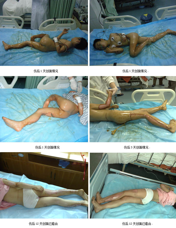 2009年2月26日7時30分,一聲巨響打破了廣州市花都區(qū)某住宅小區(qū)清晨的寧靜,住在該小區(qū)的臺胞洪某家中因煤氣泄漏突發(fā)爆炸,洪某本人以及妻子、兒子和女兒一家四口大面積嚴(yán)重?zé)齻?BR>      傷后一小時,臺胞洪某一家四口先后被急診轉(zhuǎn)入廣州市中西醫(yī)結(jié)合醫(yī)院ICU病房救治。入院診斷:患者洪某為大面積深度燒傷合并爆震傷生命垂危、兒子為大面積燒傷病情危重、妻子金某為重度燒傷、女兒為中度燒傷。該批患者入住ICU病房后,ICU的醫(yī)護(hù)人員立即為每位患者建立了有效的靜脈輸液通道,快速靜滴平衡鹽溶液,進(jìn)行有效的容量復(fù)蘇抗休克等生命支持措施,創(chuàng)面處理采用目前處于國際領(lǐng)先水平的,由我國著名生命科學(xué)家徐榮祥教授發(fā)明的燒傷皮膚原位再生復(fù)原技術(shù)。為確保對這批臺胞大面積嚴(yán)重?zé)齻颊叩某晒戎?,該院于收治病人的?dāng)日上午成立了以主管副院長劉樹華副主任醫(yī)師為組長,大外科主任張向東副主任醫(yī)師為副組長,燒傷外科、ICU等相關(guān)科室專家組成的搶救小組,負(fù)責(zé)這一家四口臺胞的救治工作。另外為了確保救治的成功,劉樹華副院長立即與中國中西醫(yī)結(jié)合學(xué)會燒傷專委會常委、北京燒傷創(chuàng)瘍研究所副所長、臨床部主任王洪生研究員電話聯(lián)系,請求其親臨該院指導(dǎo)該批臺胞的救治工作。在王洪生主任的全程臨床指導(dǎo)下,經(jīng)過廣州市中西醫(yī)結(jié)合醫(yī)院燒傷外科及全院相關(guān)科室醫(yī)護(hù)人員夜以繼日的精心治療,臺胞洪某一家四口順利渡過休克、感染關(guān),受傷最重的洪某也闖過ARDS關(guān),轉(zhuǎn)危為安,淺Ⅱ度、深Ⅱ度、淺Ⅲ度創(chuàng)面已原位再生復(fù)原(愈合)。目前臺胞洪某一家四口已順利康復(fù),洪某及妻子正在廣州市中西醫(yī)結(jié)合醫(yī)院燒傷外科進(jìn)行康復(fù)期防疤治療,兒子及女兒已正常到學(xué)校上課。臺胞洪某和其單位領(lǐng)導(dǎo)都感慨的說,全家因煤氣爆炸燒傷險些家破人亡是不幸的,但全家又受益于燒傷皮膚原位再生復(fù)原技術(shù)而轉(zhuǎn)危為安,目前闔家歡樂,真是不幸中的萬幸。
