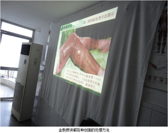 培訓(xùn)結(jié)束后,在醫(yī)務(wù)科陳科長(zhǎng)的陪同下,金主任為該院外科病區(qū)住院病人會(huì)診。并為患者進(jìn)行現(xiàn)場(chǎng)皮膚原位再生復(fù)原技術(shù)規(guī)范換藥指導(dǎo),強(qiáng)化講解了再生技術(shù)應(yīng)用特點(diǎn)和臨床規(guī)范操作的重要意義。