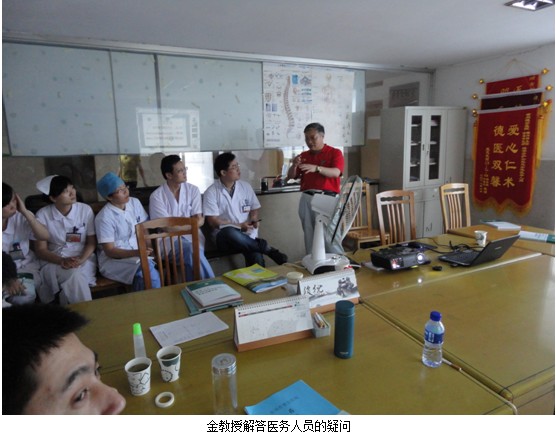 本次活動(dòng)由該院醫(yī)務(wù)科陳興陽(yáng)科長(zhǎng)組織并主持會(huì)議,參加本次培訓(xùn)醫(yī)護(hù)人員為該醫(yī)院相關(guān)科室醫(yī)務(wù)人員等。本次講座金主任以詳實(shí)的資料分三部分做了詳細(xì)的闡述:首先介紹了國(guó)內(nèi)臨床中常見(jiàn)各類(lèi)復(fù)雜、難愈創(chuàng)面治療的最新學(xué)術(shù)動(dòng)態(tài)和新進(jìn)展;然后系統(tǒng)介紹展示了生命再生科學(xué)皮膚原位再生復(fù)原技術(shù)在創(chuàng)面處理中的基礎(chǔ)研究成果;并重點(diǎn)演示了再生技術(shù)臨床實(shí)踐和技術(shù)操作規(guī)范。課后,金主任還專(zhuān)門(mén)針對(duì)臨床一線(xiàn)如普外、骨科、內(nèi)分泌科,康復(fù)科等專(zhuān)業(yè)的醫(yī)護(hù)人員進(jìn)行了現(xiàn)場(chǎng)近距離交流,并就其遇到的各種問(wèn)題給予認(rèn)真解答。