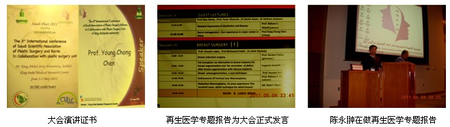2011年5月3日至5日,第三屆沙特阿拉伯(沙特)國(guó)際燒傷整形大會(huì)在沙特第二大城市Jeddah市的阿卜杜拉國(guó)王大學(xué)醫(yī)學(xué)研究中心的會(huì)議中心成功召開,來(lái)自英國(guó)、法國(guó)、德國(guó)、意大利、希臘、土耳其、埃及、黎巴嫩、阿聯(lián)酋、卡塔爾和沙特的120多名燒傷整形專家和代表參加了本次大會(huì),中國(guó)燒傷創(chuàng)瘍科技中心臨床部陳永翀主任應(yīng)邀參加了本次會(huì)議并在大會(huì)上作再生醫(yī)學(xué)專題學(xué)術(shù)報(bào)告。