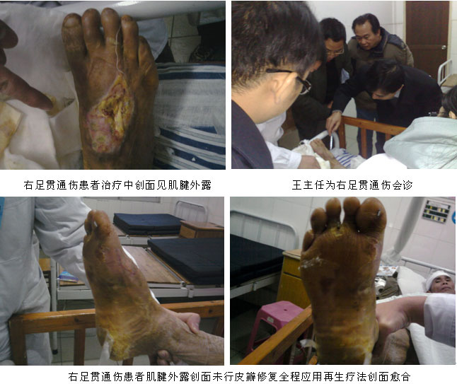 另外,在廣西與各醫(yī)院技術(shù)交流期間,王主任還于2011年1月16日應(yīng)來賓市中醫(yī)醫(yī)院周國榮院長的邀請,到該醫(yī)院為一例下肢血管病變造成的一例難愈性潰瘍創(chuàng)面患者進(jìn)行了會(huì)診和指導(dǎo)。