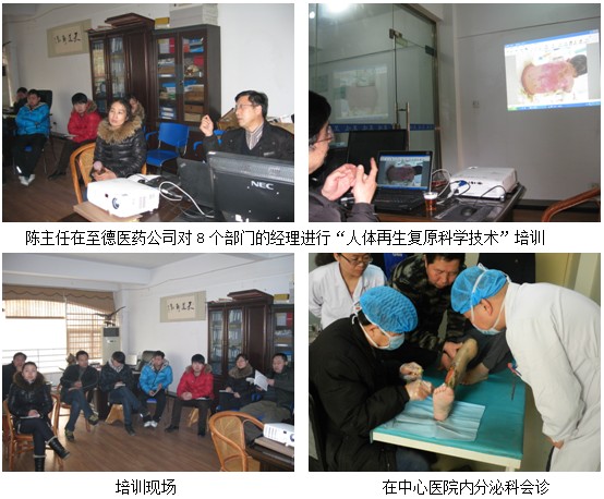 2013年元月18號(hào)下午2點(diǎn),中國(guó)中西醫(yī)結(jié)合學(xué)會(huì)燒傷專(zhuān)業(yè)委員會(huì)委員陳全喜主任醫(yī)師在新鄉(xiāng)市至德醫(yī)藥公司對(duì)8個(gè)部門(mén)的經(jīng)理進(jìn)行了“人體皮膚原位再生醫(yī)療”技術(shù)的培訓(xùn)。