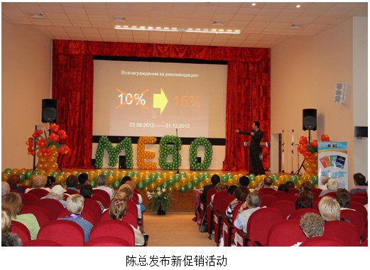 在623的慶典大會(huì)上,美寶俄羅斯公司總經(jīng)理陳剛先生宣布了REME再生系列護(hù)膚品正式上市,同時(shí)發(fā)布了下半年的市場(chǎng)促銷計(jì)劃。應(yīng)經(jīng)銷商的要求,專門(mén)請(qǐng)到了美寶集團(tuán)仙人堂會(huì)所技術(shù)專家岳敏女士做“皮膚再生還童技術(shù)應(yīng)用”培訓(xùn)。從再生科學(xué)和皮膚生理特性的高度,詮釋了美寶REME再生系列護(hù)膚品的優(yōu)點(diǎn)和原理。