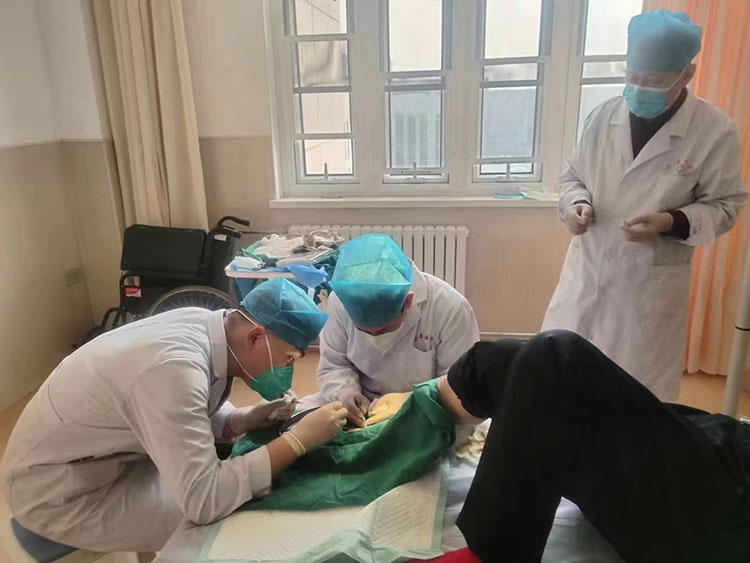 2023年1月12日,北京宣武中醫(yī)醫(yī)院外科張勇主任應(yīng)內(nèi)蒙古托克托縣醫(yī)院外科郝主任的邀請,對一例糖尿病足潰瘍創(chuàng)面的患者進(jìn)行了微粒皮種植手術(shù),并就如何換藥進(jìn)行了規(guī)范操作,之后做了科室培訓(xùn),這次會(huì)診得到了郝主任和患者的一致好評。