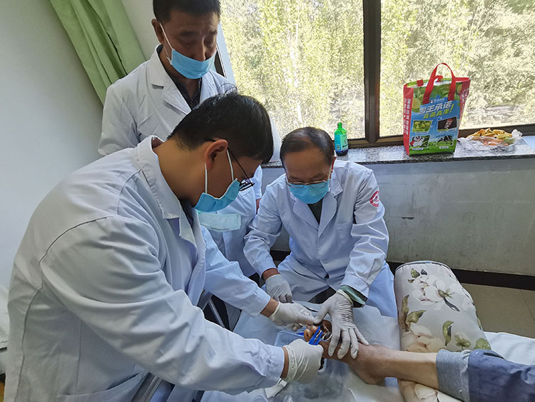 2025年9月25日,《中國燒傷創(chuàng)瘍雜志》常務(wù)編委、燒傷創(chuàng)瘍再生醫(yī)療技術(shù)臨床專家趙瑞慶在朔州市大醫(yī)院會診了四例慢性創(chuàng)面患者。其中1例4級糖足,其余3例冠脈搭橋術(shù)后下肢取血管處感染,足部外傷感染等均為VSD治療患者,討論環(huán)節(jié)趙教授強調(diào)了糖足規(guī)范,程序操作的要求以及簡易負(fù)壓方法壓力管理的重要性。