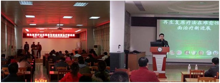 2013年1月23日下午,王主任受平南縣第二人民醫(yī)院的邀請,到該醫(yī)院進行院內(nèi)“再生復(fù)原療法在燒傷及難愈性創(chuàng)瘍創(chuàng)面治療新進展”專題臨床學(xué)術(shù)講座。