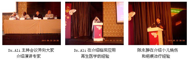 再生醫(yī)學(xué)專題會(huì)議由阿聯(lián)酋燒傷整形外科學(xué)會(huì)主席Dr. Ali Numanry主持,在簡(jiǎn)短的開幕式上Dr.Ali向大家介紹了各位演講專家,然后馬上進(jìn)入學(xué)術(shù)報(bào)告和交流議程。首先,Dr. Ali以“MEBT/MEBO---Burns Regenerative Therapy”(MEBT/MEBO---燒傷再生療法)為題,向大家介紹了他學(xué)習(xí)、應(yīng)用,再學(xué)習(xí)、應(yīng)用再生醫(yī)學(xué)的過程和體會(huì):原來(lái)他一直都認(rèn)為MEBO只是一個(gè)產(chǎn)品,只是應(yīng)用MEBO治療一些小面積淺度燒傷。不過,自從去年陳永翀教授安排他到北京見了徐教授,聽了徐教授的一番話后,尤其是到山東泰山醫(yī)學(xué)院的實(shí)地參觀、考察和交流后,心里豁然開朗,明白了再生醫(yī)學(xué)不僅僅是MEBO一個(gè)產(chǎn)品那么簡(jiǎn)單,而是一整套全新的醫(yī)學(xué)體系?;氐降习莺笏匦掳凑赵偕t(yī)學(xué)的理論和技術(shù)規(guī)范要求治療患者,實(shí)現(xiàn)了中等面積深度燒傷的皮膚原位再生復(fù)原,并向大家展示了眾多的臨床實(shí)例,很具說(shuō)服力。緊接著,陳永翀應(yīng)邀以:(1)、“A Retrospective Contrast Study of the Clinical Effects in Treating Pediatric Large Area and Deep Burns”;(2)、“Non-invasive Therapy in Scar Treatment----MEBO Scar Ointment”(“小兒大面積深度燒傷臨床治療效果的對(duì)照研究”和“疤痕的非侵入性療法---MEBO疤痕軟膏”)這2個(gè)題目為題,向各位臨床專家對(duì)照性的介紹了:(1)、再生醫(yī)學(xué)在治療小兒大面積深度燒傷的優(yōu)勢(shì)和臨床實(shí)用性;(2)、MEBO疤痕軟膏的細(xì)胞、組織調(diào)控再生機(jī)理和具體的臨床使用方法。演講內(nèi)容詳實(shí)、方法具體明了,受到歡迎。