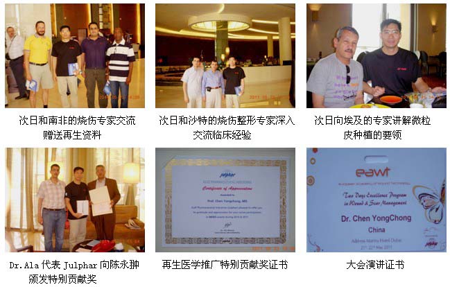 這次大會(huì)的最大亮點(diǎn)是MEBO和再生醫(yī)學(xué)。另外,這次大會(huì)和去年的會(huì)議相比也發(fā)生了明顯的變化:1、來(lái)自歐洲的Speaker較上次減少了(由去年的10名減少到5位),再生醫(yī)學(xué)的演講專家增加了(由去年的5名增加到了10名);2、再生醫(yī)學(xué)專題研討會(huì)的時(shí)間由去年的1小時(shí)增加到2小時(shí)(實(shí)際上是3h);3、原計(jì)劃只安排來(lái)自中國(guó)的陳永翀教授2場(chǎng)演講增加到了3場(chǎng);4、這次再生醫(yī)學(xué)與傳統(tǒng)西醫(yī)學(xué)在燒傷、創(chuàng)傷和疤痕治療領(lǐng)域的同臺(tái)競(jìng)技,再生醫(yī)學(xué)不管是在干細(xì)胞的研究與應(yīng)用,燒傷、創(chuàng)傷、潰瘍和疤痕的治療等都明顯勝出!再生醫(yī)學(xué)的學(xué)術(shù)地位、受認(rèn)可程度和被歡迎的程度大為提升;5、歐洲的專家開始關(guān)注再生醫(yī)學(xué),并主動(dòng)要求引進(jìn)該技術(shù)和做臨床研究等。應(yīng)該說(shuō)這是一次非常具有里程碑意義的國(guó)際學(xué)術(shù)大會(huì)。我們可以預(yù)測(cè):在明年或不久的將來(lái),下一屆的迪拜國(guó)際創(chuàng)傷與疤痕治療大會(huì)將完全變成再生醫(yī)學(xué)的學(xué)術(shù)大會(huì)!