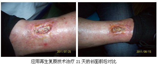 藥治療。患者曾在連云港市中醫(yī)院燒傷科接受過陸敏康主任的會診。8月15日~17日,杜福勤主任再次為其會診,該患經(jīng)1個月再生復(fù)原醫(yī)療技術(shù)的治療其創(chuàng)面已有明顯好轉(zhuǎn)。