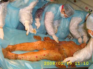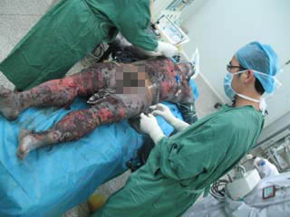 廣西賀州市中醫(yī)院是賀州地區(qū)唯一一家三甲醫(yī)院,同時(shí)也是賀州市急救中心所在地。2008年1月5日晚7時(shí)20分該醫(yī)院急診收入一例因炮竹爆炸造成全身大面積燒傷的患者。