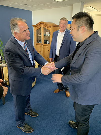 9月18日中午,美寶集團董事局主席徐鵬應(yīng)邀正式訪問加州州立大學(xué)富勒頓分校(CSUF)并與學(xué)生座談。在校長辦公室,徐鵬與校長Framroze Virjee、副校長Greg Saks以及座談與會嘉賓加州眾議員陳立德和“洛杉磯周刊”CEO Brian Calle進行了友好交流,尋找共識和合作方向。之后,副校長Greg Saks陪同徐鵬、陳立德和Brian Calle來到教室,與座無虛席的一教室學(xué)生進行交流互動,負責(zé)CSUF政府與社區(qū)關(guān)系的共同副校長Tami Bui主持座談會,邀請三位嘉賓以自身經(jīng)歷講述“企業(yè)家精神與公益和政治”這一研討課題,并與現(xiàn)場師生互動交流、回答學(xué)生問題,分享個人心得。會后徐鵬主席與副校長Greg Saks進一步交流并在其陪同下參觀了學(xué)校將用于電競的場地和設(shè)施,徐鵬的HHP基金會前不久剛支持爾灣加大成立了第一個電競獎學(xué)金,推廣這一剛進入奧運會項目的運動,在CSUF將會在這一方向進一步探討合作,打造整個加州公立大學(xué)的電競聯(lián)盟。