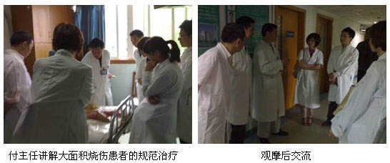 2011年6月1日,大邑縣骨科醫(yī)院急診科曹林主任和黃蓉護(hù)士長等一行6人在四川省中西醫(yī)結(jié)合學(xué)會燒傷專委會朱春紅同志的陪同下,來到雅安市人民醫(yī)院燒傷整形科參觀學(xué)習(xí),雅安市人民醫(yī)院燒傷整形科付子俊主任熱情的接待了來賓,付子俊主任陪同大家來到病房,曹林主任一行認(rèn)真觀摩了大面積深度燒傷患者和創(chuàng)瘍患者的再生技術(shù)規(guī)范治療,同時還通過臨床觀摩付子俊主任就臨床的病人治療要點、治療注意事項等向他們做了詳細(xì)的介紹和講解。臨床觀摩后付子俊主任在醫(yī)生辦公室和大家交流,他向大家介紹了雅安市人民醫(yī)院和科室發(fā)展情況,同時將自己使用再生醫(yī)療技術(shù)的心得毫無保留的傳授給大家,對大家提出的問題一一做了詳細(xì)解答。曹林主任激動的說:這次雅安之行收獲特別大,非常感謝省學(xué)會和付主任的幫助和支持,回去后一定用再生醫(yī)療技術(shù)為患者造福。