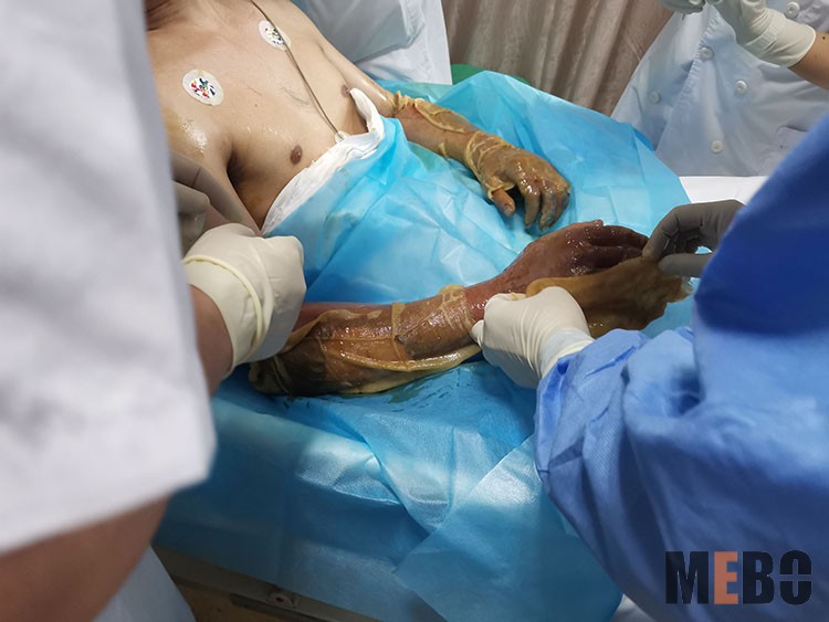 7月19日,重慶市巴南區(qū)中醫(yī)院創(chuàng)瘍科受邀來到重慶兩江新區(qū)第一人民醫(yī)院普外科,用再生醫(yī)療技術進行兩例爆炸傷患者頭面部以及雙上肢燒傷會診與交流。