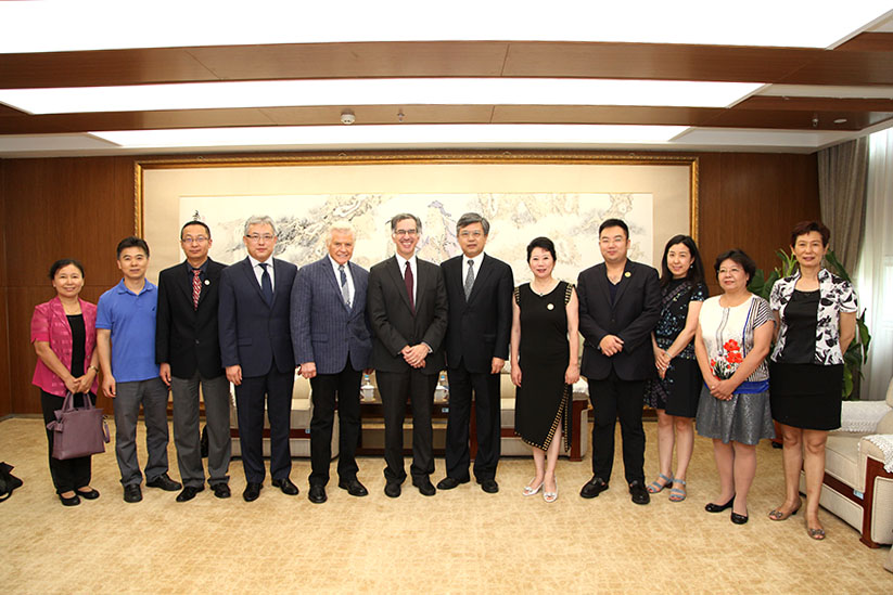 2017年8月18日,美寶集團(tuán)董事局主席徐鵬、副主席李俐,美國醫(yī)學(xué)科學(xué)院院士、哈佛大學(xué)外科教授、哈佛大學(xué)醫(yī)學(xué)院BIDMC徐榮祥再生治療中心董事Eliot Chaikof博士及美國南加州大學(xué)徐榮祥再生生命科學(xué)研究中心主任George Shannon博士一行在天津南開大學(xué)與南開大學(xué)校長龔克進(jìn)行會晤,各方就學(xué)校建設(shè)、創(chuàng)新創(chuàng)業(yè)、學(xué)術(shù)研究與合作、教育合作等領(lǐng)域展開交流。