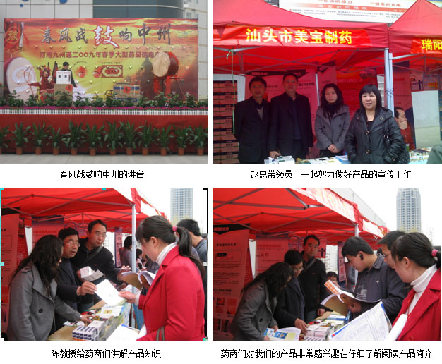 陽(yáng)春三月,河南中州召開(kāi)了河南省九州通2009年春季大型藥品信息交流會(huì),諸多藥商紛紛前來(lái)參加會(huì)議。展銷(xiāo)會(huì)共舉行了三天,參加會(huì)的有各地市的商業(yè)公司、產(chǎn)品分銷(xiāo)商及終端客戶(hù)。河南省美寶也帶著美寶國(guó)際集團(tuán)的多項(xiàng)再生產(chǎn)品參加了此次 “春風(fēng)戰(zhàn)鼓響中州”交流會(huì)進(jìn)行推介。