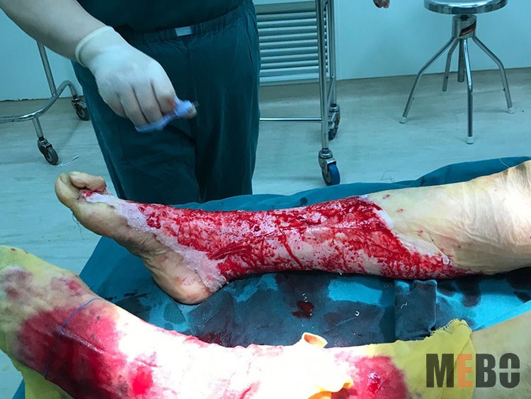 11月26日,中國中西醫(yī)結(jié)合學(xué)會(huì)燒傷專業(yè)委員會(huì)副主委、南通三院燒傷整形美容與創(chuàng)面修復(fù)科主任—趙賢忠教授受邀到南通中醫(yī)院,對(duì)一例開水燙傷創(chuàng)面植異種皮術(shù)后皮下出血感染患者進(jìn)行了會(huì)診。手術(shù)去除異種皮后改用美寶濕潤燒傷膏行皮膚再生療法處理,創(chuàng)面處理效果理想,受到科室全體醫(yī)護(hù)人員的贊揚(yáng)!