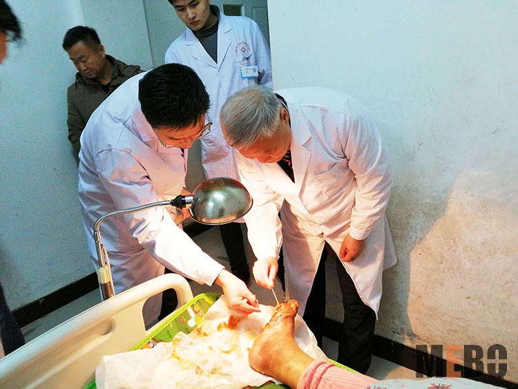 11月27日,北京榮祥再生醫(yī)學(xué)研究所副所長、《中國燒傷創(chuàng)瘍雜志》編委金黨軍教授到嵩縣黃金醫(yī)院對(duì)改院在收的一例85歲高齡的大面積燒傷病人進(jìn)行會(huì)診,對(duì)該院再生醫(yī)療技術(shù)在糖足,壓瘡方面的應(yīng)用給與充分肯定,并示范燒傷創(chuàng)面的規(guī)范換藥,在場醫(yī)護(hù)人員均表示受益匪淺。